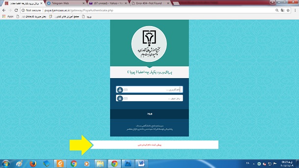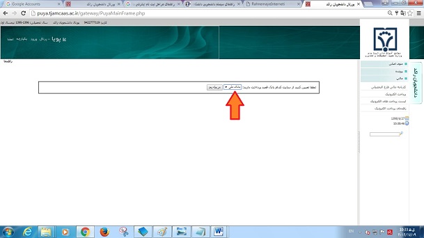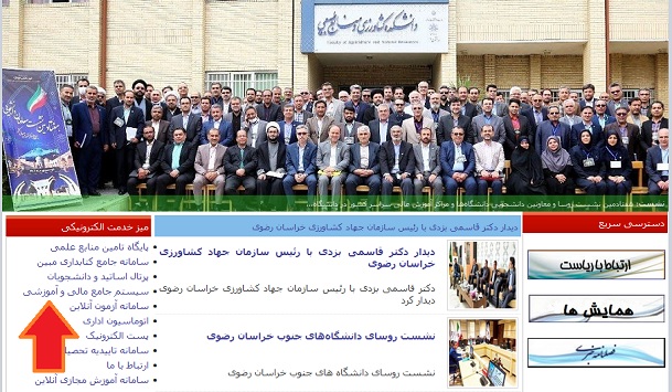 کلیک بر روی قسمت پرتال اساتید و دانشجویان