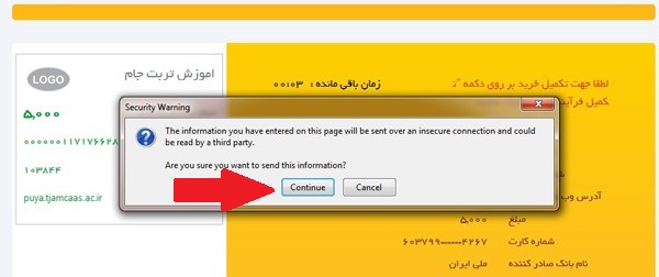 پس از فشردن گزینه پرداخت، در پنجره جدیدی که باز میشود گزینه تکمیل فرآیند خرید را انتخاب کنید و سپس در پنجره جدیدی که باز میشود حتما گزینه اشاره شده را انتخاب نمایید.