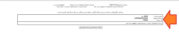 در صورتی که پرداخت بدرستی صورت گرفته باشد شماره پیگیری و کد رسید را دریافت خواهید کرد.