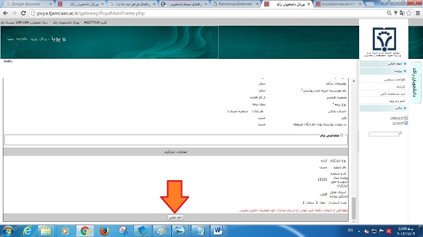 در این قسمت پس از چک کردن کلیه اطلاعات وارد شده و قبولی صحت آنها بر روی گزینه تایید نهایی در انتهای صفحه کلیک نمایید.