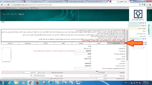 در این مرحله پذیرفته شدگان محترم باید اطلاعات شناسنامه ای و آموزشی خود را که سیستم به آنها ارائه می نماید مشاهده وتکمیل نمایند.